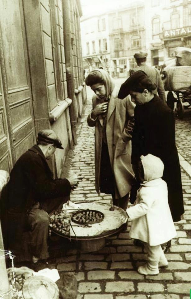 Ο καστανάς με τη φουφού του, πεζοδρόμιο γωνία...