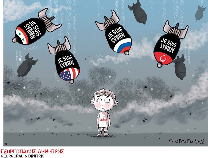 Φιλοδοξούμε η έκθεση «Πόλεμος Α.Ε. – War S.A.» να αποτελέσει μια φιλειρηνική, διεθνιστική κραυγή αγωνίας και συμπαράστασης, ένα εικονογραφημένο μήνυμα φιλίας των λαών κόντρα στον μιλιταρισμό, τις βόμβες και τον θάνατο» αναφέρει σε ανακοίνωσή της η Λέσχη Ελλήνων Γελοιογράφων.