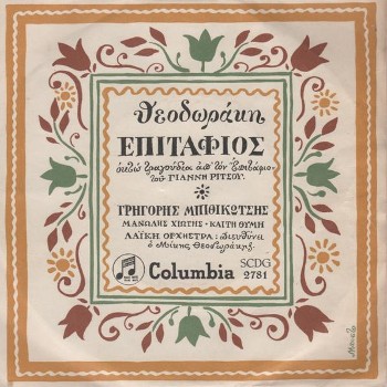 Την έπαιξα μόνος μου στο πιάνο...». Στον «Επιτάφιο» απεικονίζεται το μωσαϊκό της ελληνικής μουσικής. «Η ποίηση του Ρίτσου απελευθέρωσε από μέσα μου όλες αυτές τις μελωδίες... Εχει μέσα και το επτανησιακό, και το κρητικό, και το λαϊκό, και το ρεμπέτικο στοιχείο, αυτά τα ακούσματα που είχα μέσα μου...», θα πει χρόνια αργότερα ο συνθέτης.